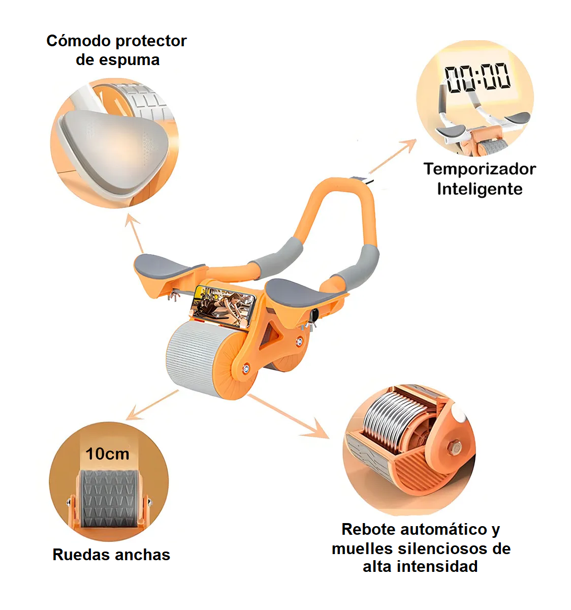 ¡RESULTADOS QUE EXPLOTAN! Con dos ruedas extra anchas (11.4 cm) y sistema de rebote automático de alta intensidad, sus movimientos serán fluidos, seguros y con ese empuje extra que necesita para fortalecer sus músculos centrales como nunca antes. ¡Soporta hasta 150 kg para que entrene con toda la confianza!